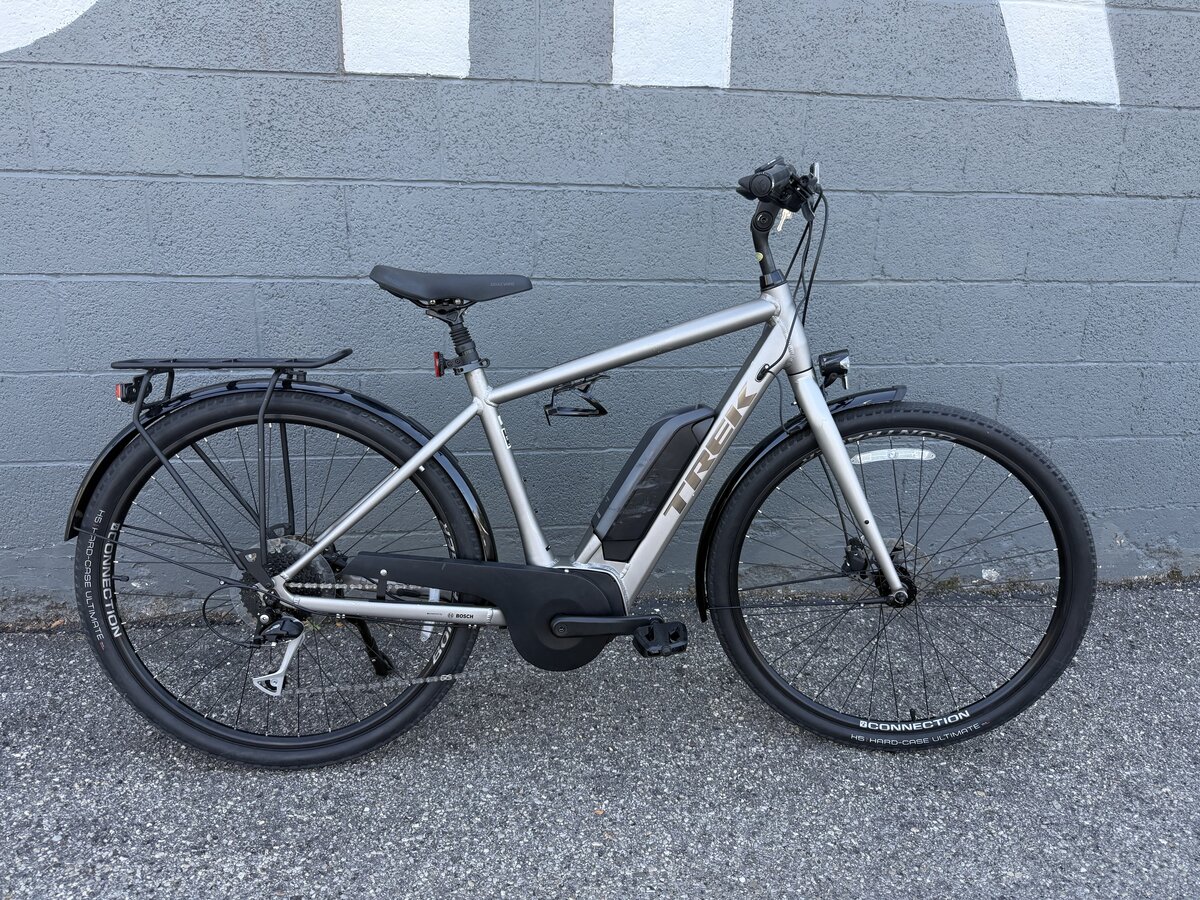 The Trek Verve+ 2 Stepover is an electric hybrid bike designed for comfort on commutes, daily cruises, and recreational rides. Its Bosch motor allows you to go up to 20 mph pedal assist, so even though its electric, you're still getting that workout in! Also, Its step over frame provides ample area in the front triangle for bags and bottles, while its flat foot technology provides great stability while you cruise. This bike also comes with some sweet features such as integrated front and rear lights, fenders, rack, and a kickstand. Another great feature is its removable battery! This is ideal for when you leaving your bike unattended and want bring the battery inside with you, and for convenient charging. Whether you're commuting to your local grocery store or cruising the rail trails, the Verve+ is one of the more comfortable ebikes you've been on, for a great price!